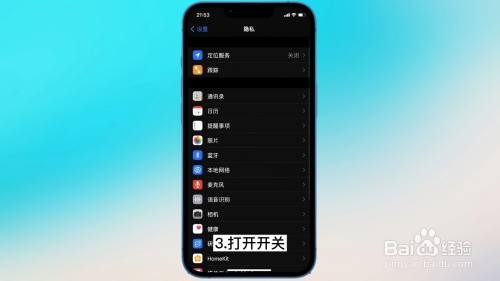 进入手机设置页面,点击隐私选项,点击进入定位服务,打开定位服务的开关按钮即可。