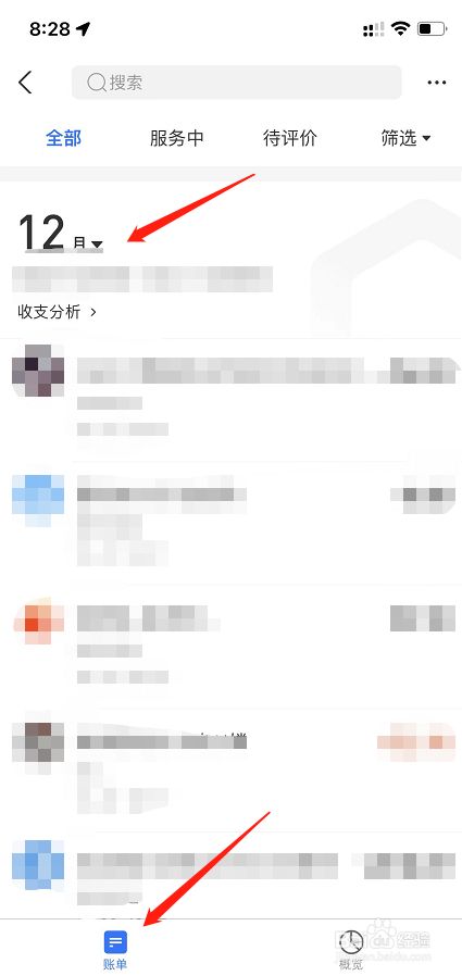 进入账单页面后,选择右上角的月份,点击左下角的账单,即可查看每个月的支付记录。