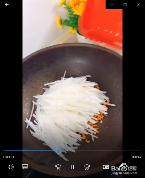 萝卜洗净去皮,切成薄片,再切成细丝。再准备点小葱,香菜,海米,粉丝。油热放入海米小火炒一下。