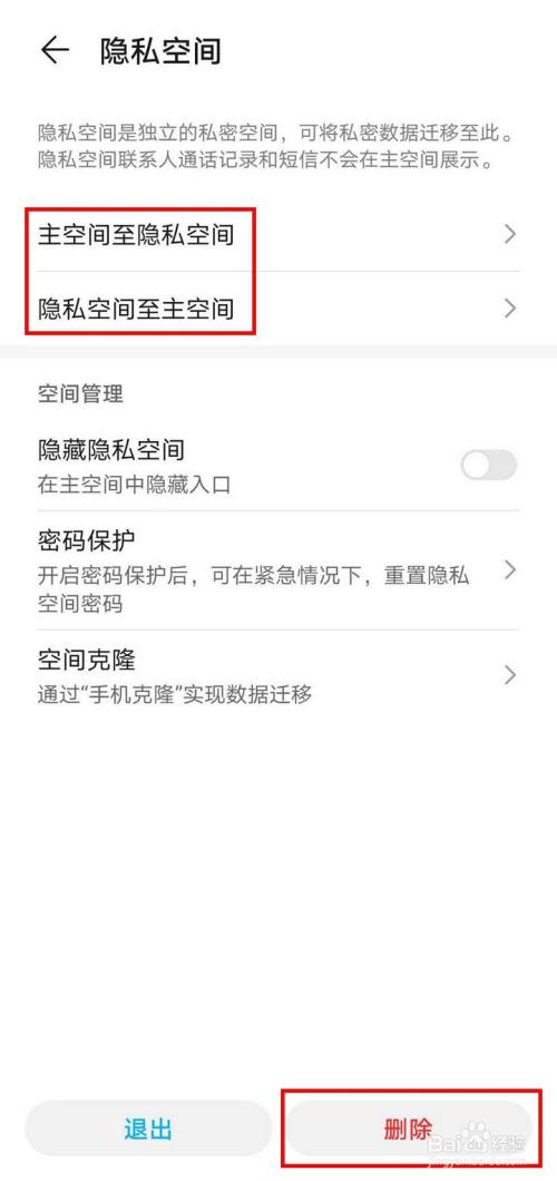 刚进入隐私空间就像新手机刚打开的样子,修改各种设置视自身需要,隐私空间进入到“隐私空间”的设置项,内容比较多一些,这其中的迁移功能和删除功能不错;