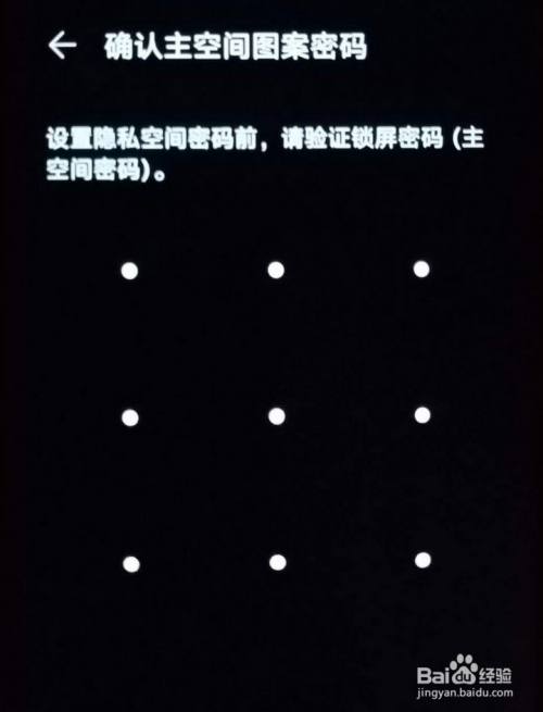 先用主空间的锁屏图案密码验证,再设置隐私空间的图案密码,设置两次,点击“完成”;
