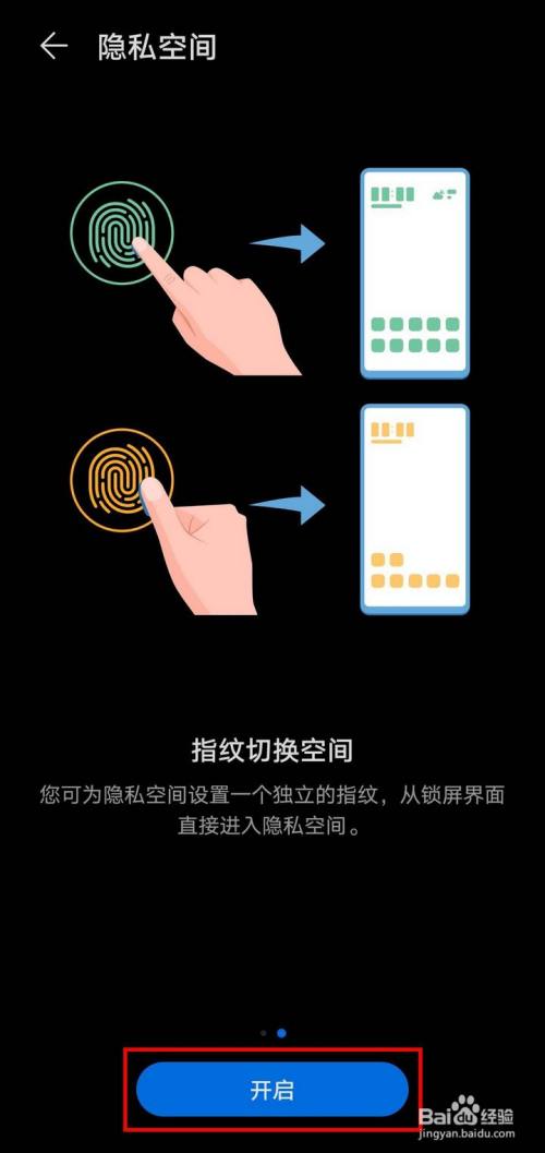 看一下隐私空间的介绍,还有便捷的指纹切换空间,看明白后,点击“开启”;