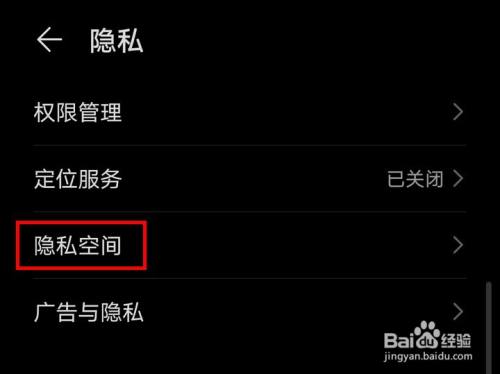 点击进入“隐私”,有四个选项,再点击进入“隐私空间”;