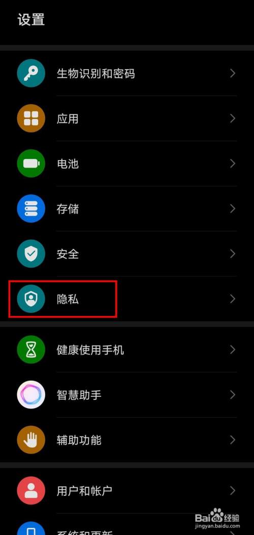 首先在手机里找到“设置”,进入列表,上滑找到“隐私”;