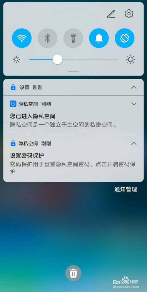进入时会有些卡顿,还需要主空间密码验证,没设置指纹的话,需要隐私空间密码进入系统,进入后会有通知消息;