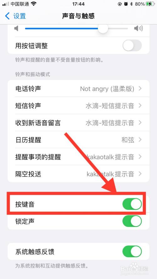 然后滑动到底下,找到按键声】点击右边的按钮关闭即可。