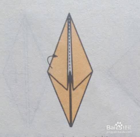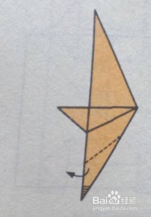 将两侧的小角折出更小的角向外拉扯,像下图一样沿箭头方向折叠。
