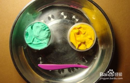 在制作一个可爱的小恐龙前,要先选择好所用的粘土的颜色,颜色不要选多,这里选择了两种颜色,做出来简单,也很有效果,如下图所示。
