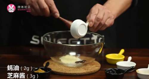 2加入生粉,糖,鸡精,盐,蚝油,芝麻酱,咖喱粉,水搅拌均匀。
