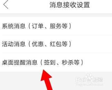 接着在打开的页面中,点击桌面提醒消息消息(签到、秒杀等),如下图所示。