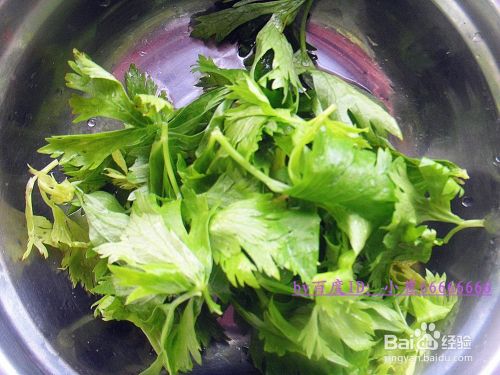 凉拌芹菜叶啦!先把芹菜叶摘好,洗干净。