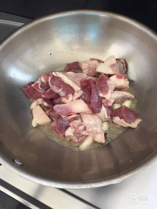大火,翻炒均匀。提醒大家,油放的不能太少,那样炒出来的肉不香,特别柴。