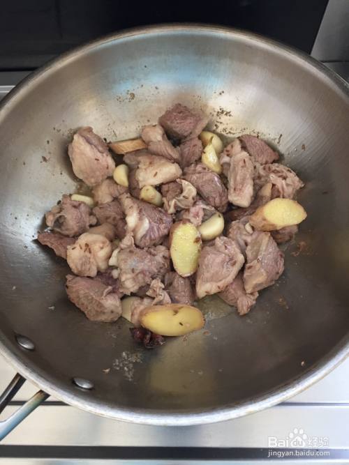锅上火,放适量食用油,油微热即可放入小茴香、八角、大蒜、姜块爆香。放入油就可以把这些调料放锅里,这样香味可以多多的被释放。