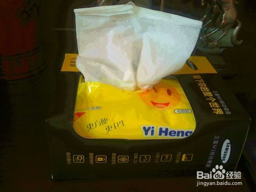 你看这就是用废弃的包装盒改装成简易的餐巾纸的外装饰盒。