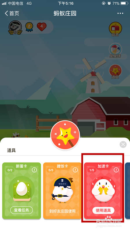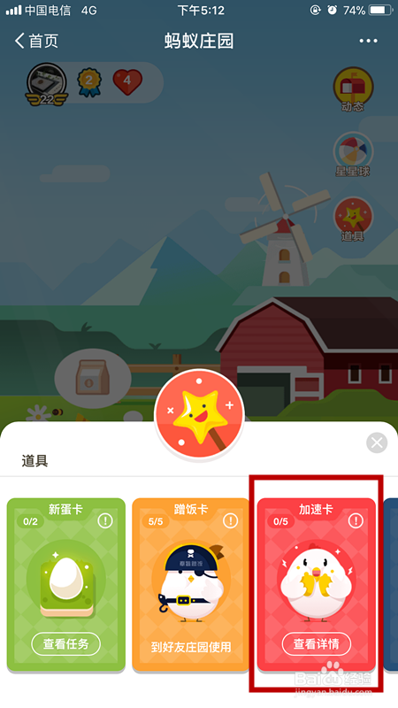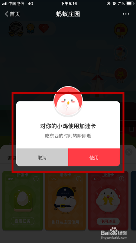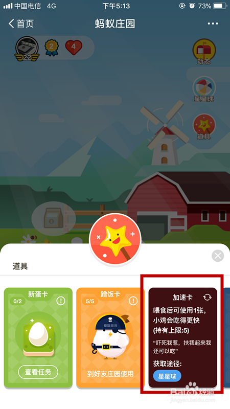使用支付宝蚂蚁庄园的加速卡后,蚂蚁庄园小鸡吃食物的时间由5小时缩短为4小时,一天可以使用好几次哦,快来看看怎样获得并使用加速卡吧。