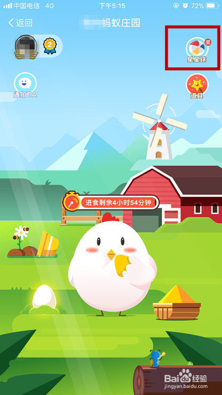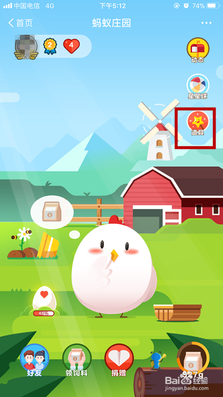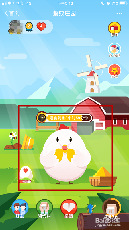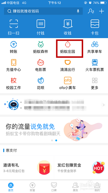 登陆自己的app账号,点击“蚂蚁庄园”;