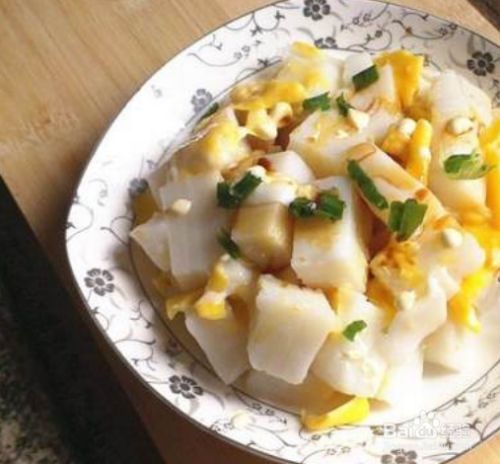 蒸好后取出米糕放凉,切成小丁,不用担心不好看,切碎了都一样
