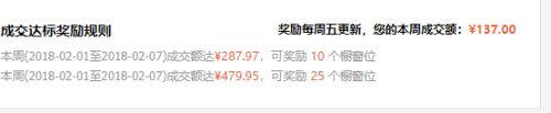按照每周的成交额,也会有奖励:成交额从每个周四0点,至下周三23点59分59秒为一个统计周期,在周五发放奖励的橱窗数量。