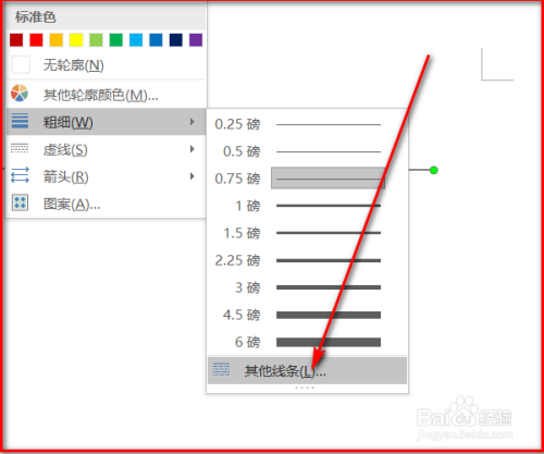 再接着弹出的下拉菜单中点击粗细下的其他线条按钮。