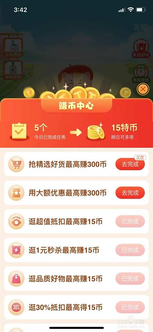 接着,点击右侧的特币任务,打开任务列表,完成各种任务后直接获得特币。