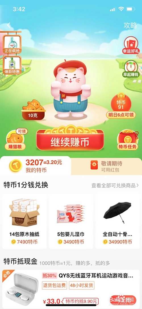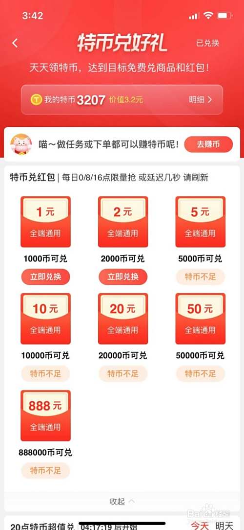 积累了足够的特币后,就可以在下方的1分钱兑好礼列表里,换取自己喜欢的奖品啦。