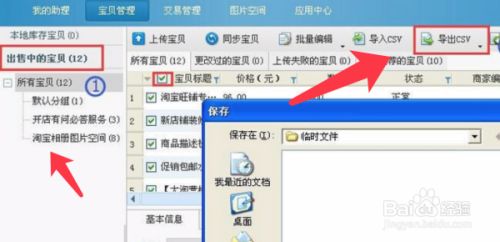 点击宝贝管理,点击左侧所有宝贝,点击上面的导出csv。