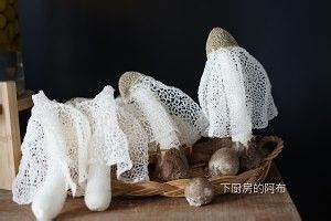 大概9点多,竹荪就会穿上美丽的白纱裙啦~不管是长在地里还是已经采摘下来的,到点都会穿上裙子哟!有没有像童话故事里午夜盛装打扮偷溜去跳舞的12公主?