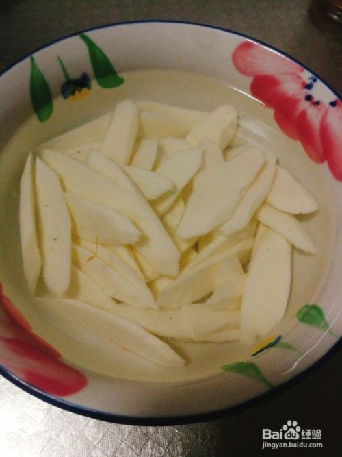 铁棍山药去皮,清洗干净切成片后放在清水里浸泡,反复清洗几次尽量多地去掉表面的粘液