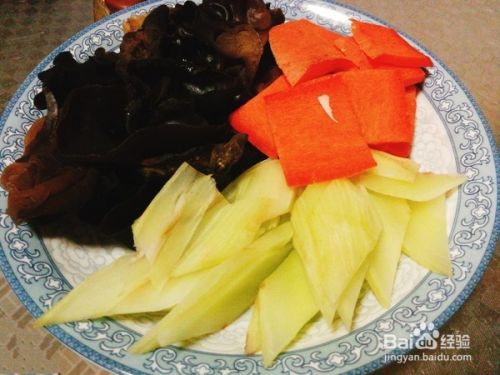 将木耳提前泡发,清洗干净。胡萝卜和莴笋切片