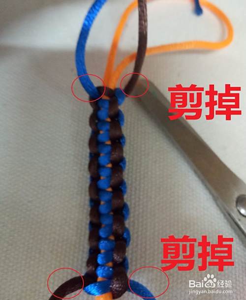 编织到你手腕的大约程度,便可把两头的线减除,并用火机把线头烤好