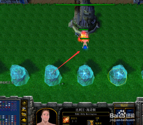 使用隐藏密码后,系统自动选择好了隐藏英雄,此时英雄出生在基地附近,如下图所示。