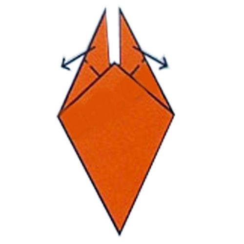 11沿虚线向箭头方向向内翻折,折出头部、嘴部。