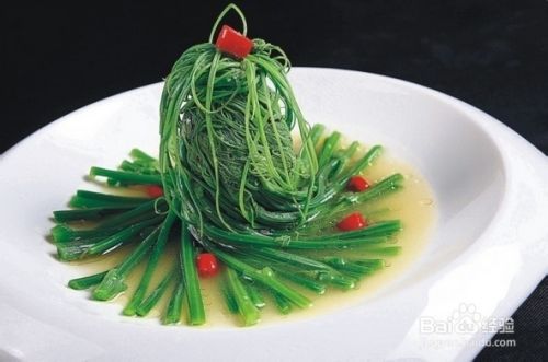 【材 料】 龍鬚菜 1把 蒜末 少許 柴魚片 適量 【調 味 料】 鹽 1/2小匙 雞粉 少許 糖 少許 香油 1大匙