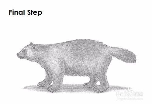 最后一步(可选):给你的狼獾图画添加一些阴影,以增加尺寸和音量。在着色时选取光源的方向,以使阴影与其一致。改变你的铅笔的压力,以获得不同程度的色调价值。