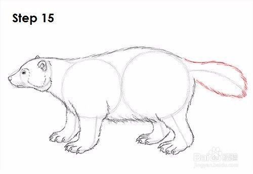 第15步:现在学习如何画出狼獾的厚实,浓密的尾巴。使用右边的线作为绘制它的指南。在线路的基本路径中使用快速,简短的笔划。