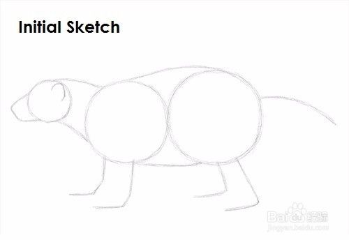 第二步:画一个约左上角第一圈大小四分之一的圆作为狼獾头的指导。不要将圆圈放在距离身体太远的地方,否则狼獾会以长长的脖子结束。