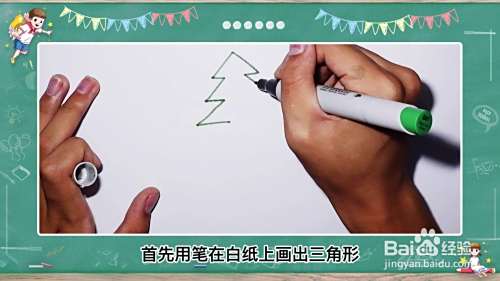 首先用笔在白纸上画出三角形交叠在一起当作松树的树叶。