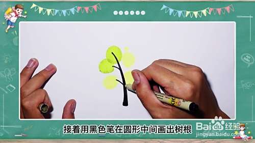 接着用黑色笔在圆形中间画出树根。