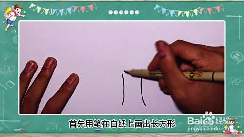 首先用笔在白纸上画出长方形当作树根。