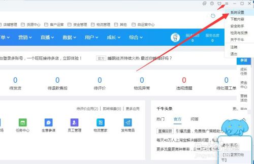 下面介绍用电脑怎么进行自动回复的设置,①点击右上角的【系统设置】