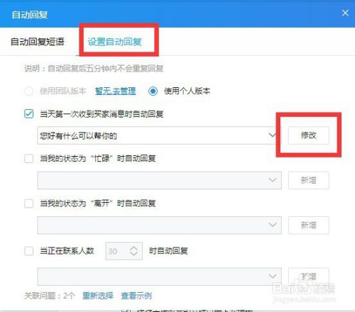 ⑥点击【关联问题】然后可以在自动回复下面设置一些常见的客户有需要了解的问题