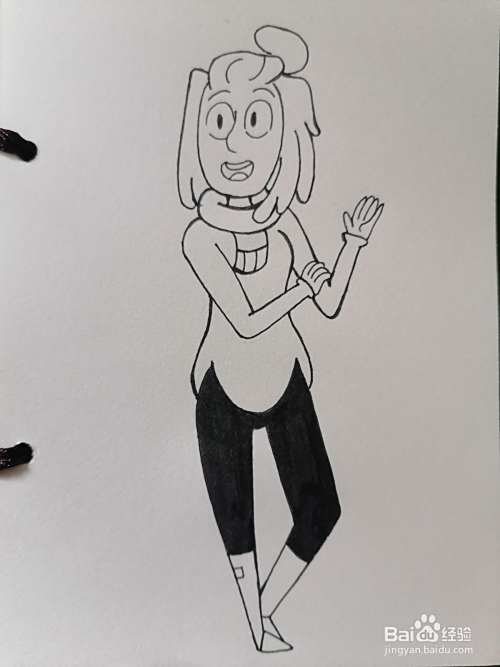 最后,我们画出黑色长裤就完成夸夸其谈的漂亮女生