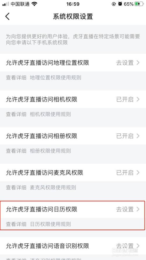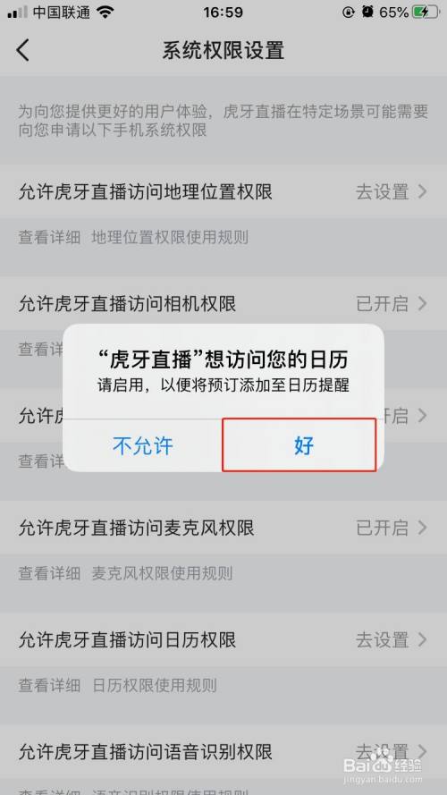 7.确认框选择好,这样就开启了虎牙直播访问日历的权限了