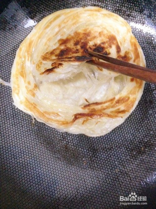 挑起一角饼皮。