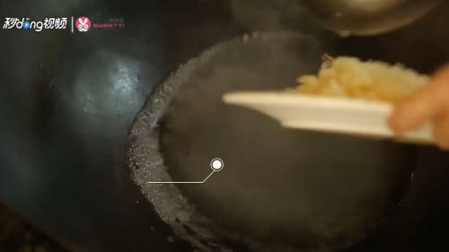 4锅中烧水,竹笋焯水,锅中放油笋粒过油炸脆。