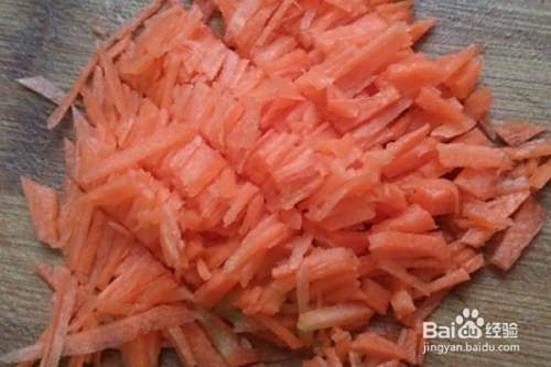 准备好食材,红萝卜去皮切成细丝,再切成小丁备用。