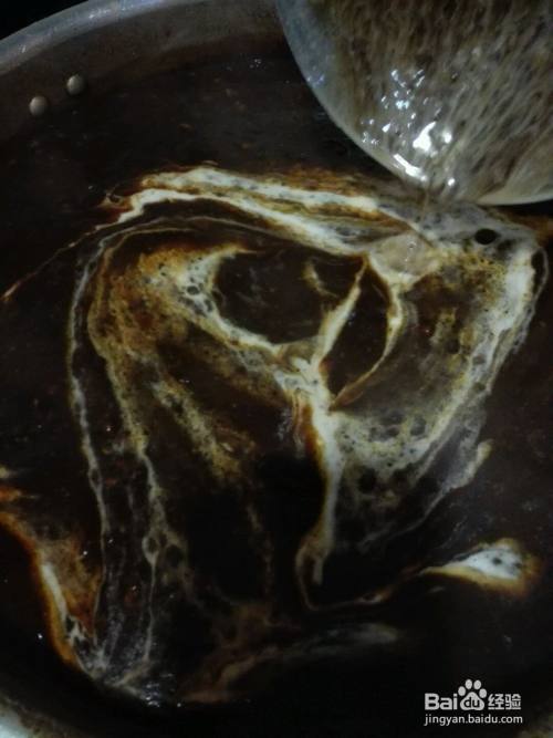 大火烧开后,(烧开的过程中要经常用勺搅拌)加入花生酱,黑胡椒汁,牛肉粉,牛肉汁转小火煮2~3小时,煮的过程中要经常搅拌。