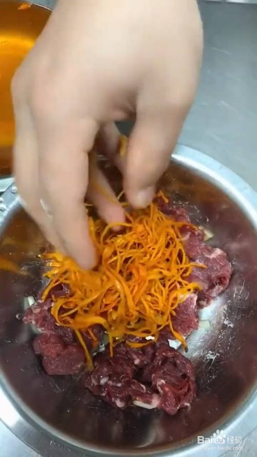 将虫草花用温水提前泡发15分钟,然后控干水分,倒入牛肉中抓拌均匀。