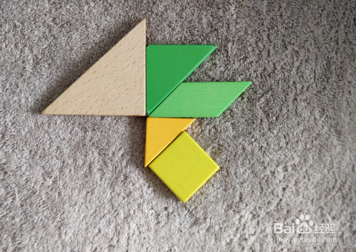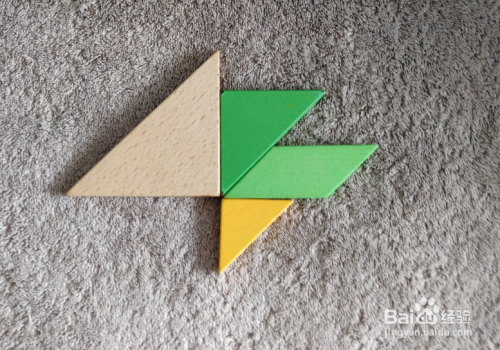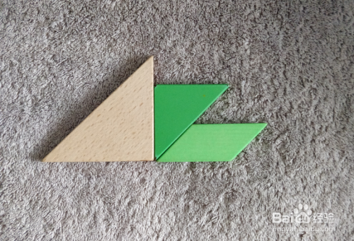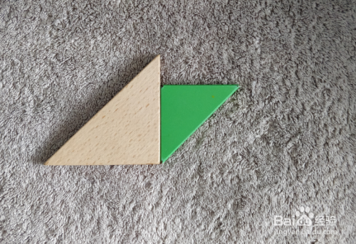 放上本色三角形,右侧放上绿色三角形挨着,如图。