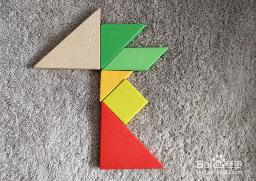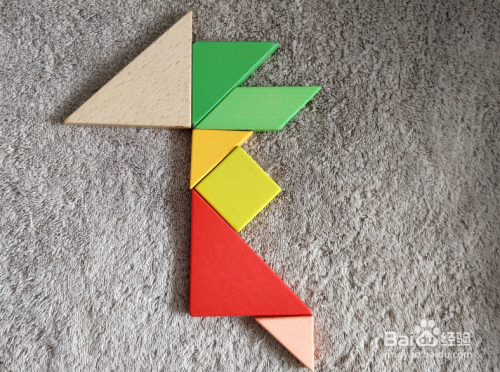 在红色三角形的下面,放上橙色三角形挨着,如图。这样就拼好了。